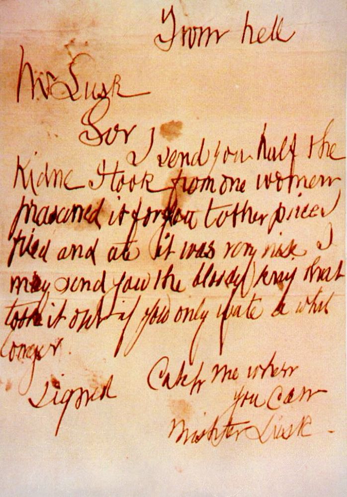 본 글은, 현대 인류사 최초의 연쇄 살인마로 꼽히는 잭 더 리퍼에 관한 이야기입니다. 아니, 그가 썼다고 알려진 편지들에 관한 이야기입니다. 그가 보냈다는 무시무시한 내용의 편지, 그리고 동봉된 인간의 신장. 과연, 잭 더 리퍼는 정말로 편지를 보냈던 것일까요?